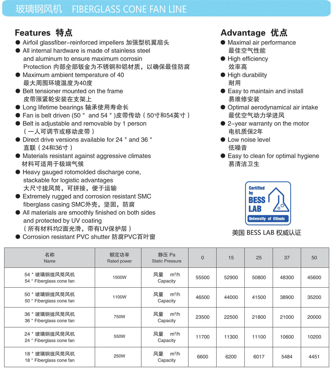 Agrifan新款玻璃鋼風(fēng)機(jī),采用空氣動(dòng)力學(xué)設(shè)計(jì),重新定義新通風(fēng)標(biāo)準(zhǔn)三大主要指標(biāo):空氣性能,風(fēng)機(jī)效率和風(fēng)量比。通過更高的產(chǎn)品性能和風(fēng)量來滿足高效(縱向通風(fēng)/橫向通風(fēng))和溫室需求,以耐用可靠的優(yōu)點(diǎn), Agrifan玻璃鋼風(fēng)機(jī)以較低的成本保證新鮮的空氣。