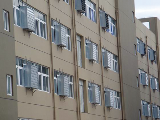 風(fēng)機(jī)主要由扇葉、電機(jī)、外框、護(hù)網(wǎng)、支撐架、百葉窗等部件組成,電機(jī)驅(qū)動(dòng)扇葉產(chǎn)生氣流,活動(dòng)百葉窗可按用戶需要配備,開機(jī)后百葉窗可自動(dòng)開啟,停機(jī)時(shí)百葉窗自動(dòng)閉合,以防室外灰塵、異物等進(jìn)入,亦可避免雨雪及倒風(fēng)的影響。